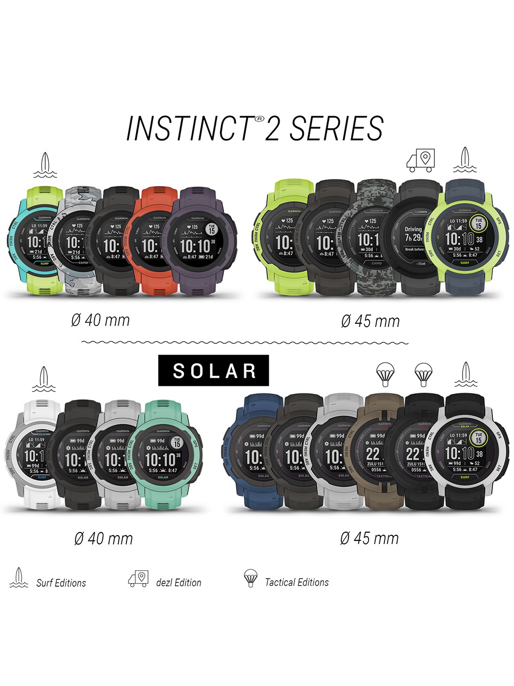 - Tootja seeria: Instinct 2S 40mm 10ATM