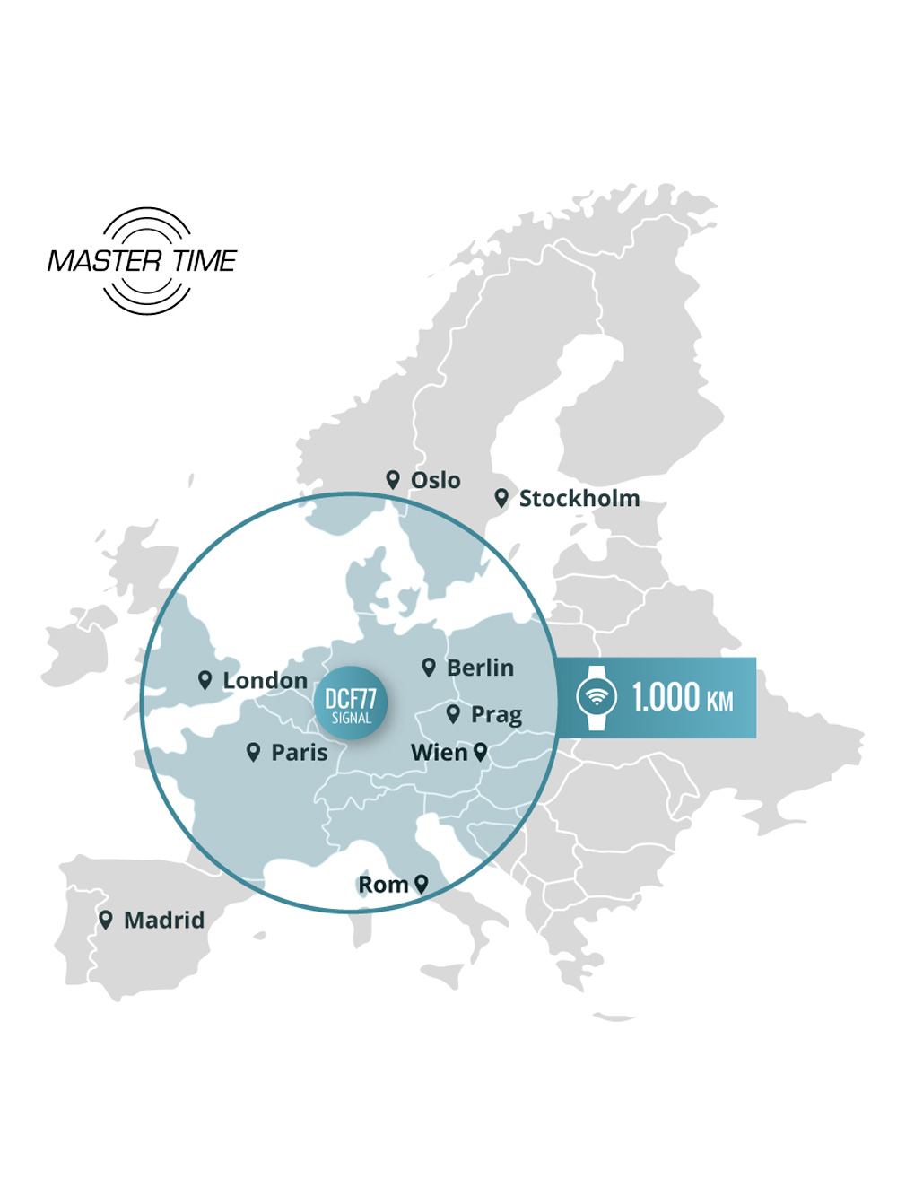 - Liikumise märgistus: W314, võttes vastu signaali DCF 77 (Mainflingen, DE)