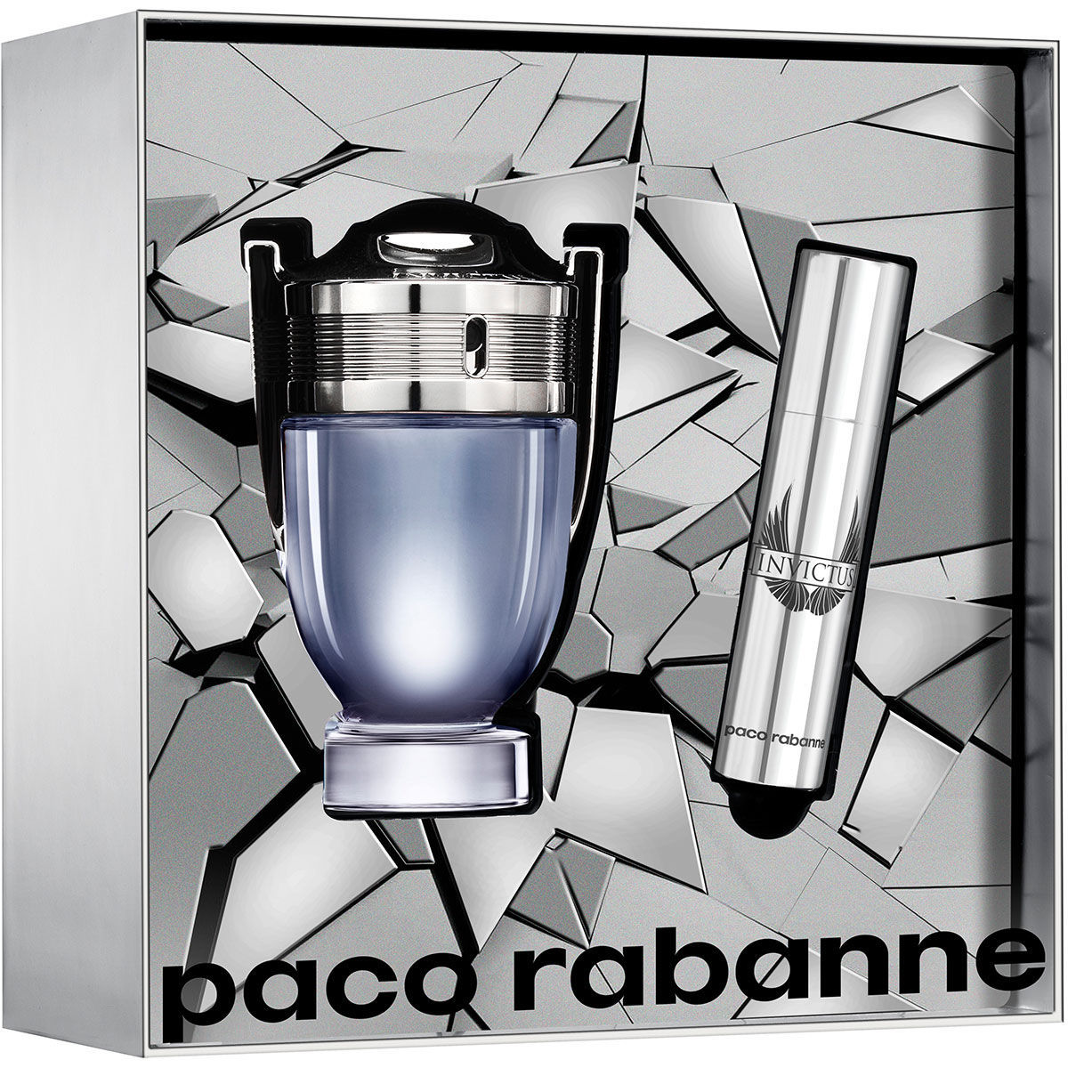Invictus: nimi esindab uhkelt mehelikkust ja ladina identiteeti. See mees on võitmatu, kangelane, kellele kõik langevad. Iidsetel aegadel omistati sportlastele jumalikke atribuute, tänapäeval on sportlased ideaalse mehe sümboliks ja naasevad aeglaselt mütoloogiliste olendite juurde. Paco Rabanne parfüümid on edukad tänu jutuvestmisele, seega loob iga lõhn oma maailma. Invictus sündis soovist rääkida spordist uutmoodi. Milline mees ei unistaks sellest, et ühel päeval staadionile või areenile jalutades kuuleb oma nime igalt poolt skandeerides ning temast saab ihaldusobjekt? Pooljumal Invictus on tänapäeva kangelane. See sensuaalne värske koostis erineb suuresti traditsioonilistest meestelõhnadest. See ei ole pehme suvelõhn ega traditsiooniline Köln. Invictus on struktureeritud aroom, millel on väga iseloomulik alus. Traditsiooniline püramiidi struktuur defineeriti ainult kaheks koostisosade rühmaks. Värskeid noote esindavad greip, loorber ja mere noodid. Parfüümi sensuaalne osa koosneb guajakipuidust, hallist ambrast ja patšulist.
