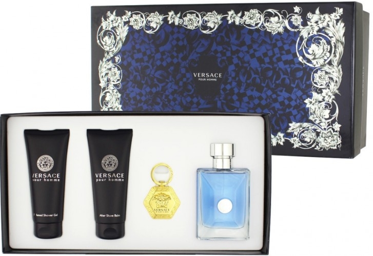 Versace Versace pour Homme Gift komplekt, tualettvesi 100ml + 100ml habemeajamisjärgne palsam + 100ml dušigeel + võtmehoidja